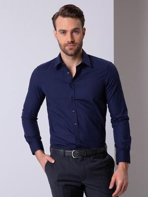 Lacivert Slim Fit Uzun Kollu Basic Gömlek