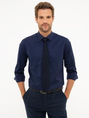 Lacivert Slim Fit Uzun Kollu Klasik Gömlek