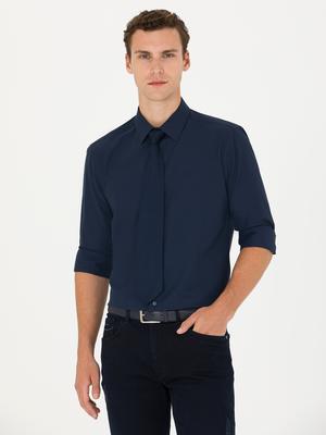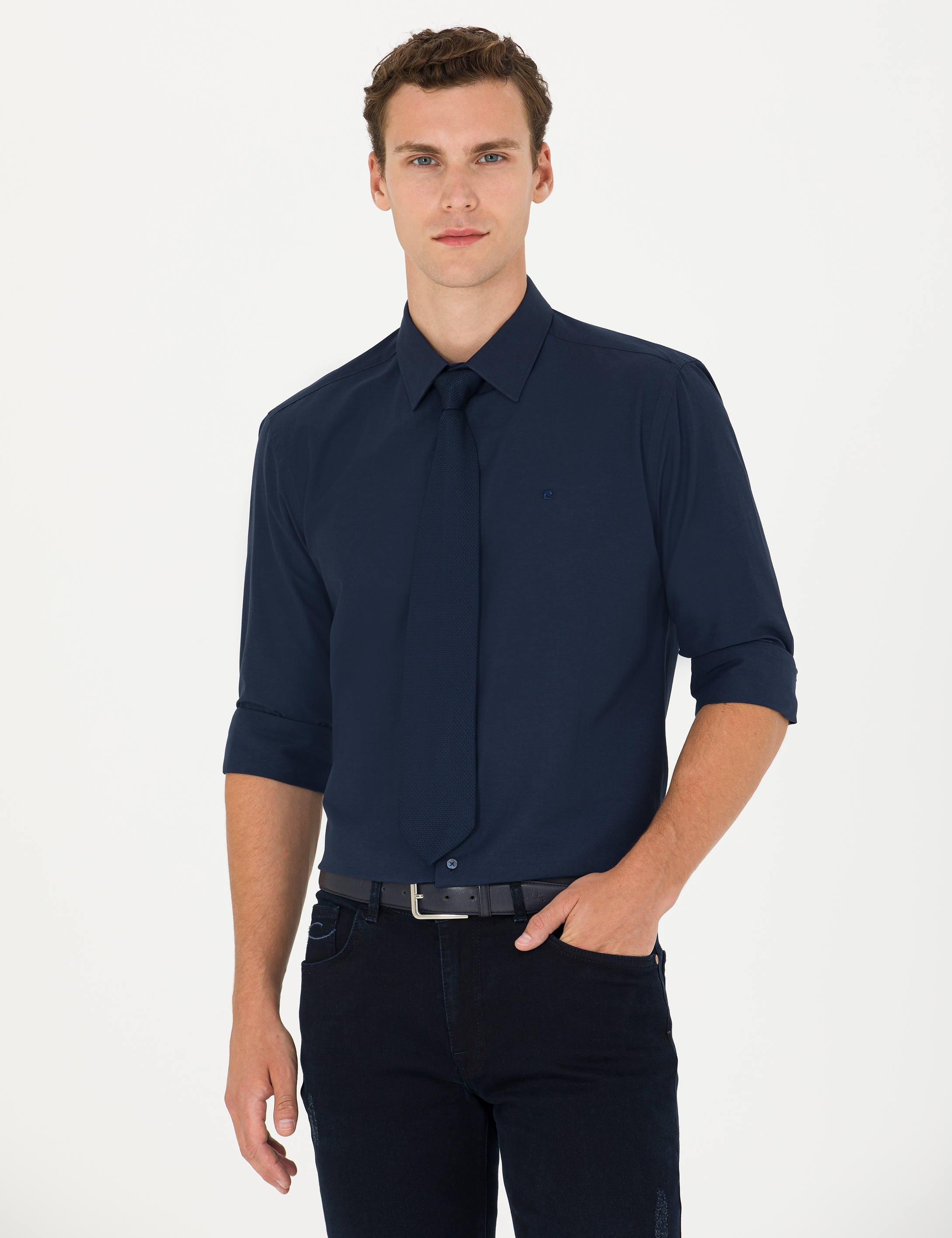 Lacivert Slim Fit Uzun Kollu Basic Gömlek