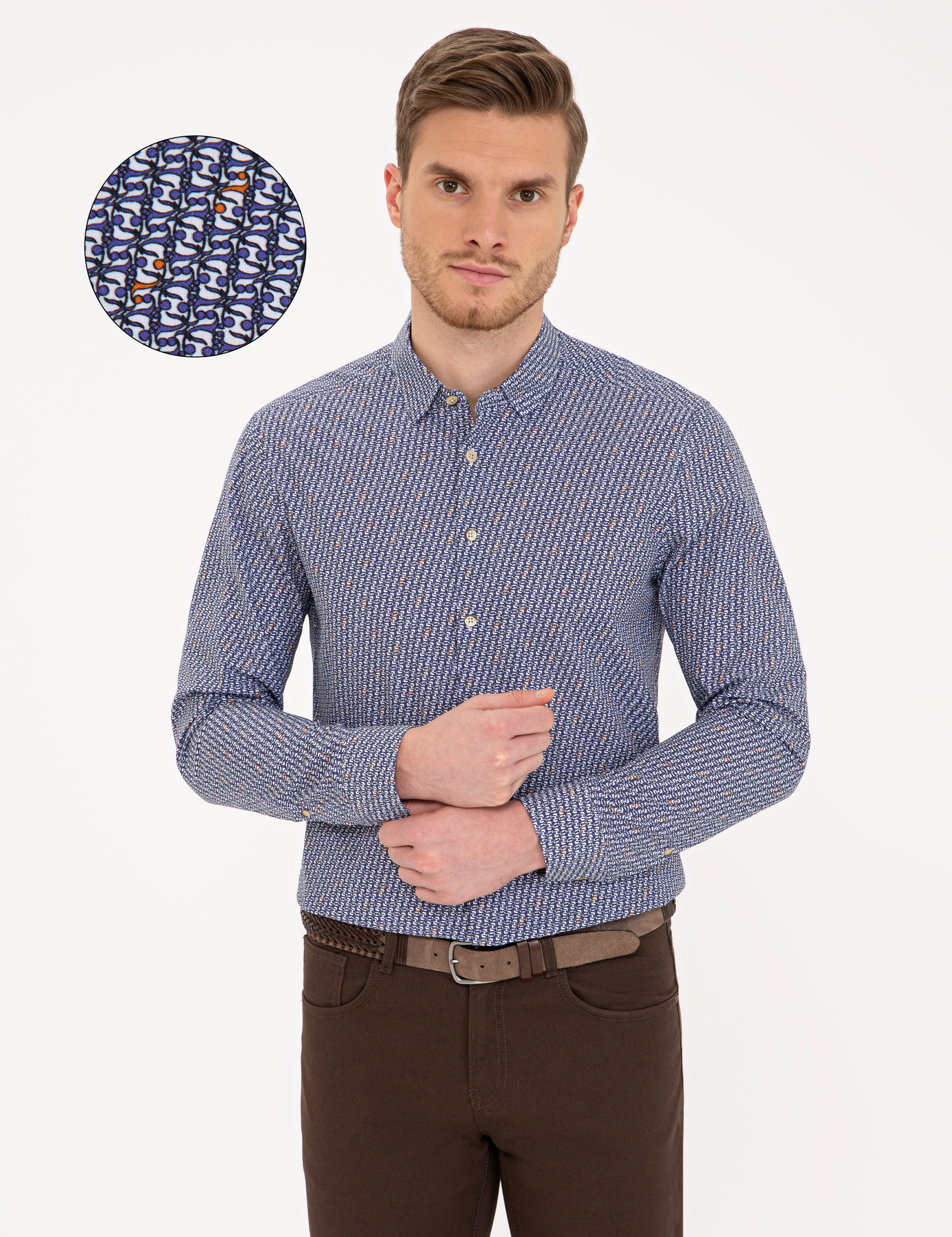 - Lacivert Slim Fit Uzun Kollu Gömlek