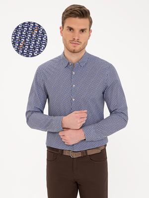 Lacivert Slim Fit Uzun Kollu Gömlek