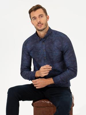Lacivert Slim Fit Uzun Kollu Gömlek