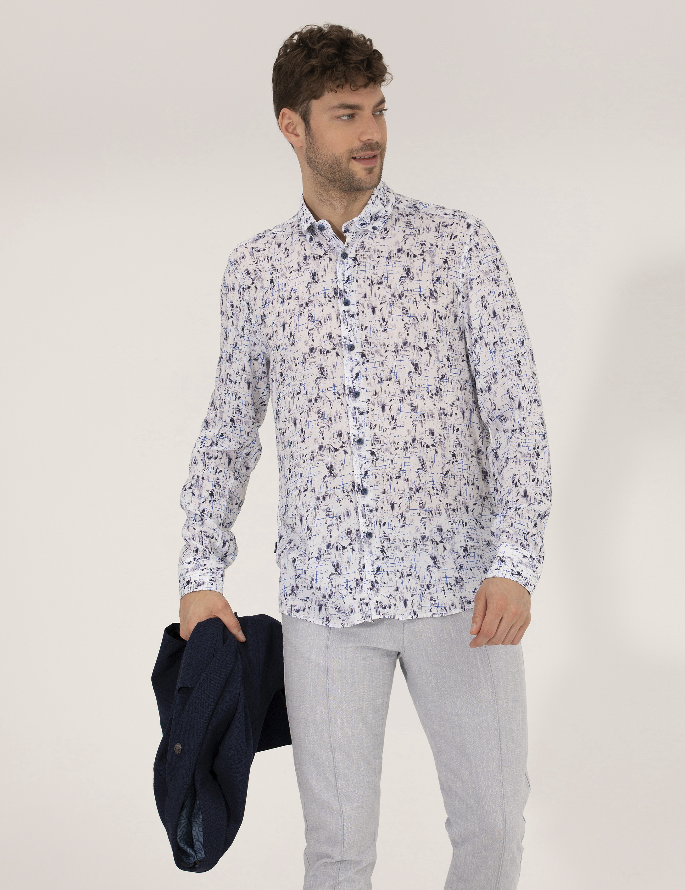 - Lacivert Slim Fit Uzun Kollu Gömlek