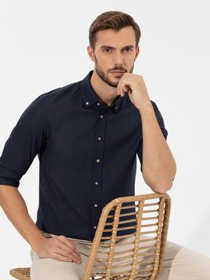 Lacivert Slim Fit Uzun Kollu Gömlek