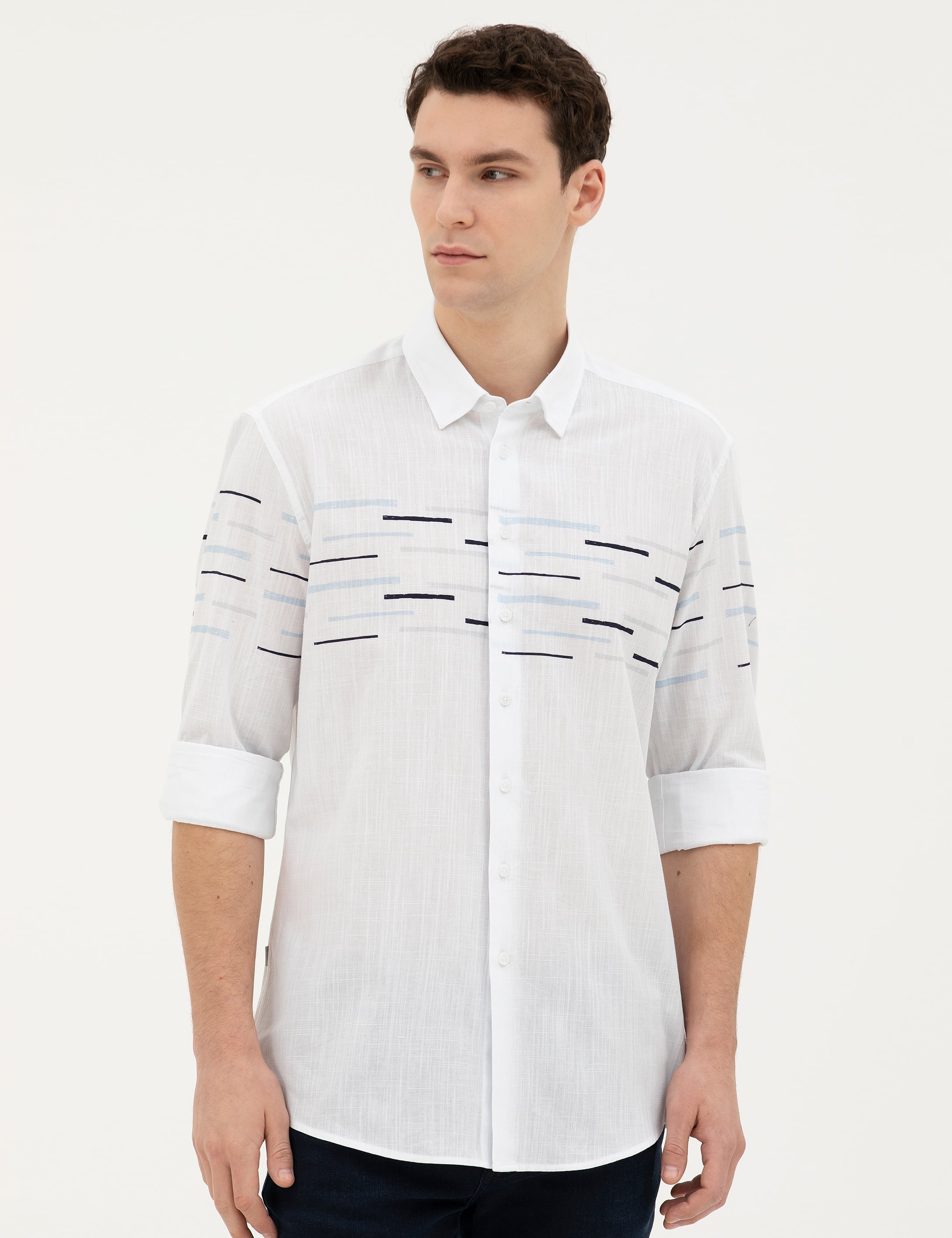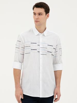 Desenli %100 Pamuk Uzun Kollu Slim Fit Erkek Gömlek