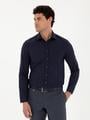 - Lacivert Slim Fit Armürlü Uzun Kollu Gömlek