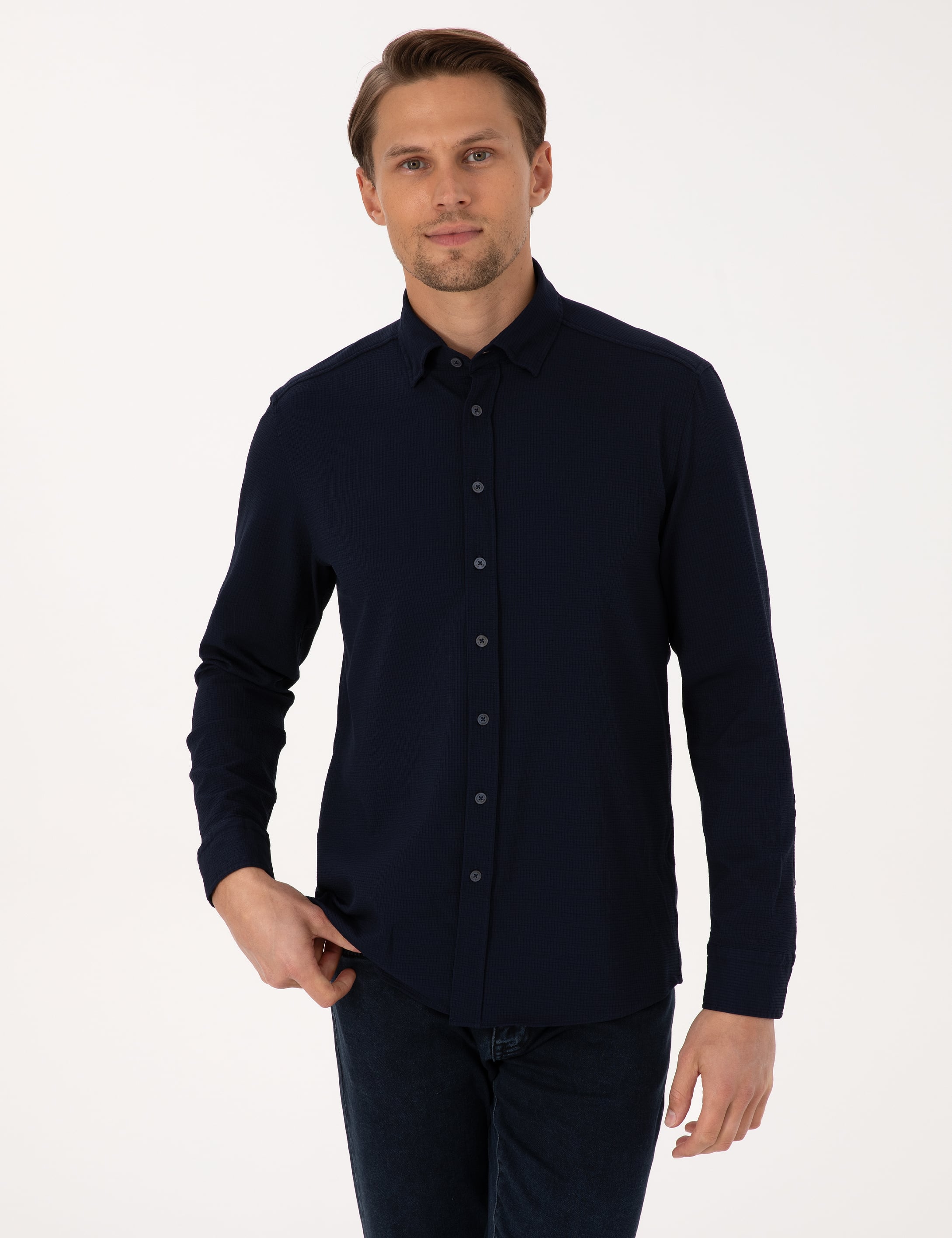 Koyu lacivert tonundaki Pierre Cardin slim fit uzun kollu gömlek, micro desen detaylarıyla klasik tasarıma modern bir dokunuş katıyor. Slim fit kesimi sayesinde vücuda zarifçe oturan bu model, uzun kollu ve klasik yakalı tasarımıyla hem günlük hem iş hayatında stilinizi tamamlıyor. Düğme detayları ve esnek yapısı, hareket özgürlüğü sunarken, hafif kumaşı gün boyu konfor ve enerji sağlar. Gardırobunuza yeni bir soluk getiren bu gömlek, modern detaylarıyla güncel trendleri yakalamanıza yardımcı oluyor.