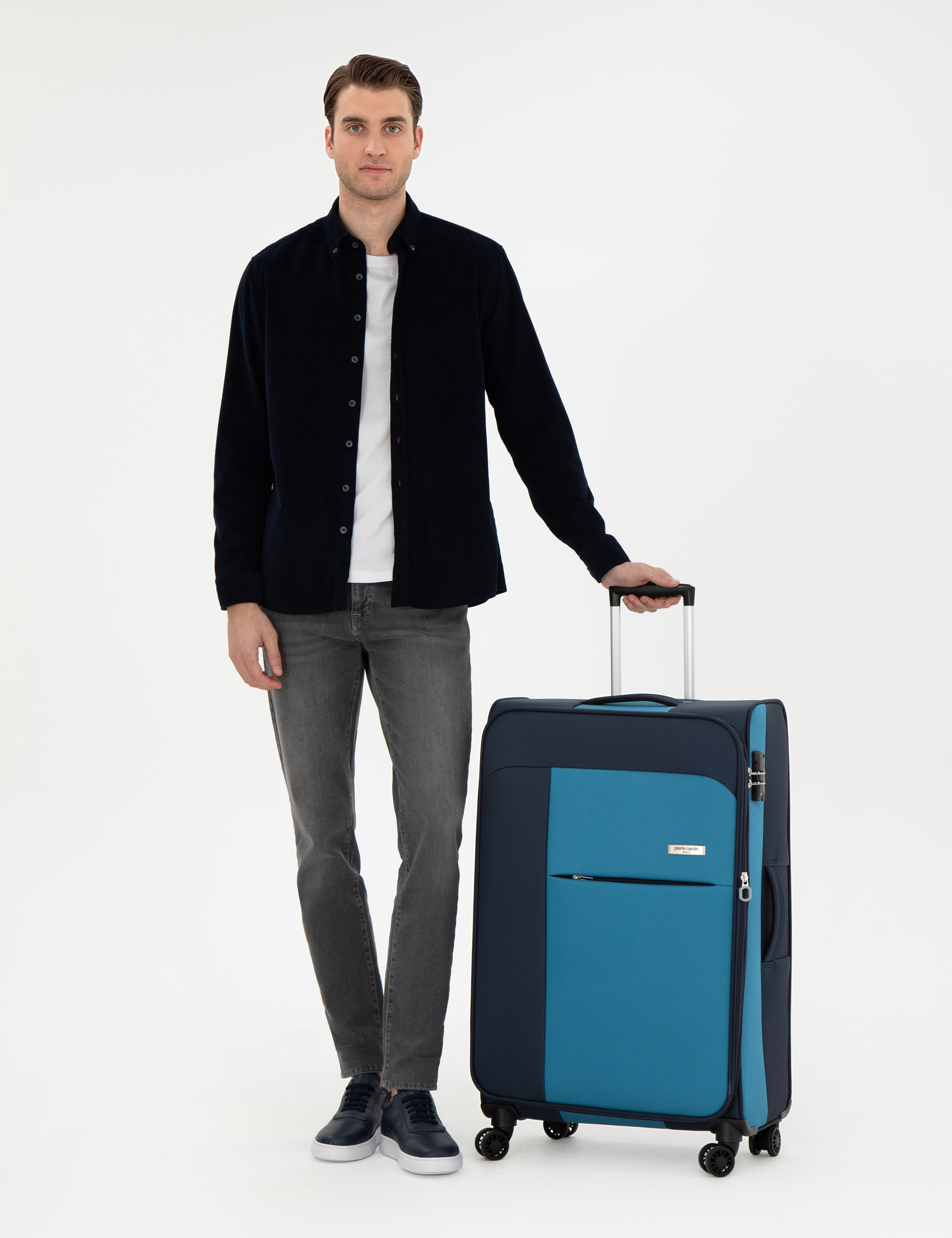 - Lacivert Büyük Boy Kumaş Valiz