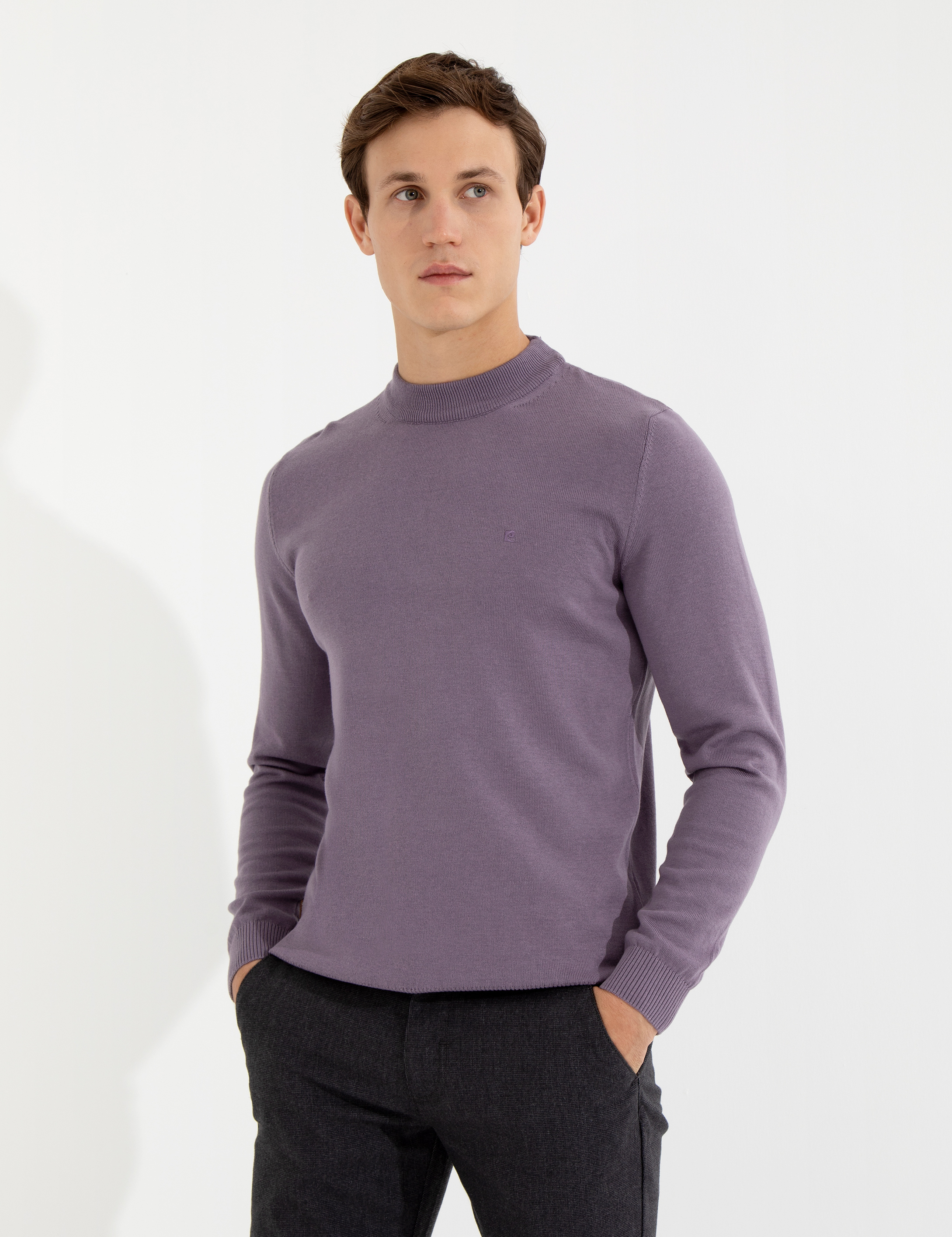 Lila Slim Fit Çeyrek Yaka Basic Triko Kazak