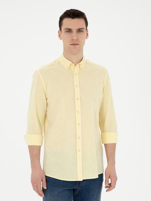 Sarı Keten Karışımlı Regular Fit Uzun Kollu Gömlek