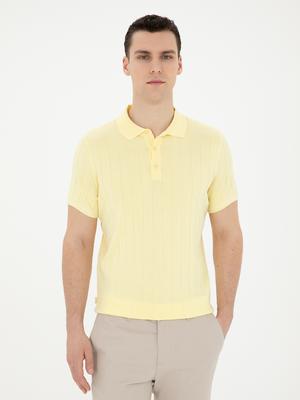 Sarı Slim Fit Düğmeli Polo Yaka Triko Tişört