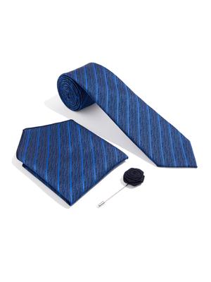 Mavi 3'lü Kravat-Mendil-Kravat İğnesi Set