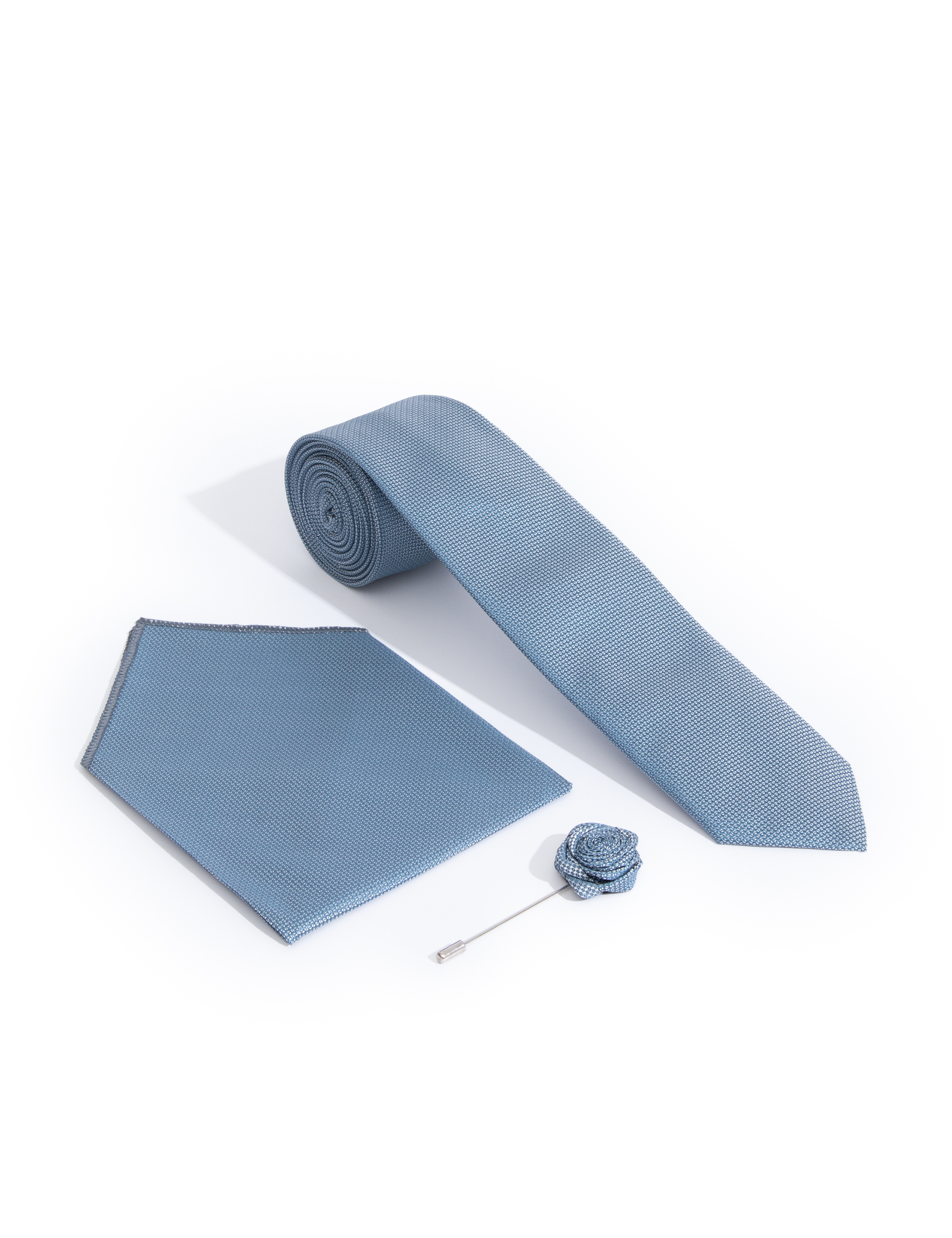 - Mavi 3'lü Kravat-Mendil-Kravat İğnesi Set