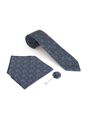 Mavi 3'lü Kravat-Mendil-Kravat İğnesi Set
