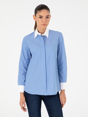 Klasik şıklığı ile dikkat çeken mavi çizgili kadın gömlek, konforlu kesimi ve zamansız tasarımıyla her gardırobun vazgeçilmez parçalarından biri olur. Günlük kullanımdan iş ortamına kadar geniş bir kullanım alanı sunan bu gömlek, sofistike detaylarıyla her an şık ve rahat hissetmenizi sağlar.