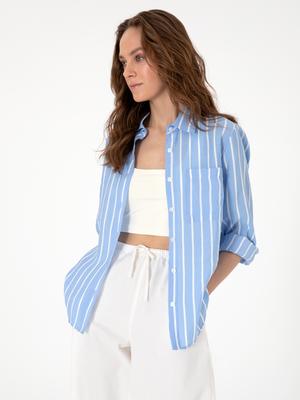 - Mavi Comfort Fit Çizgili Uzun Kollu Gömlek