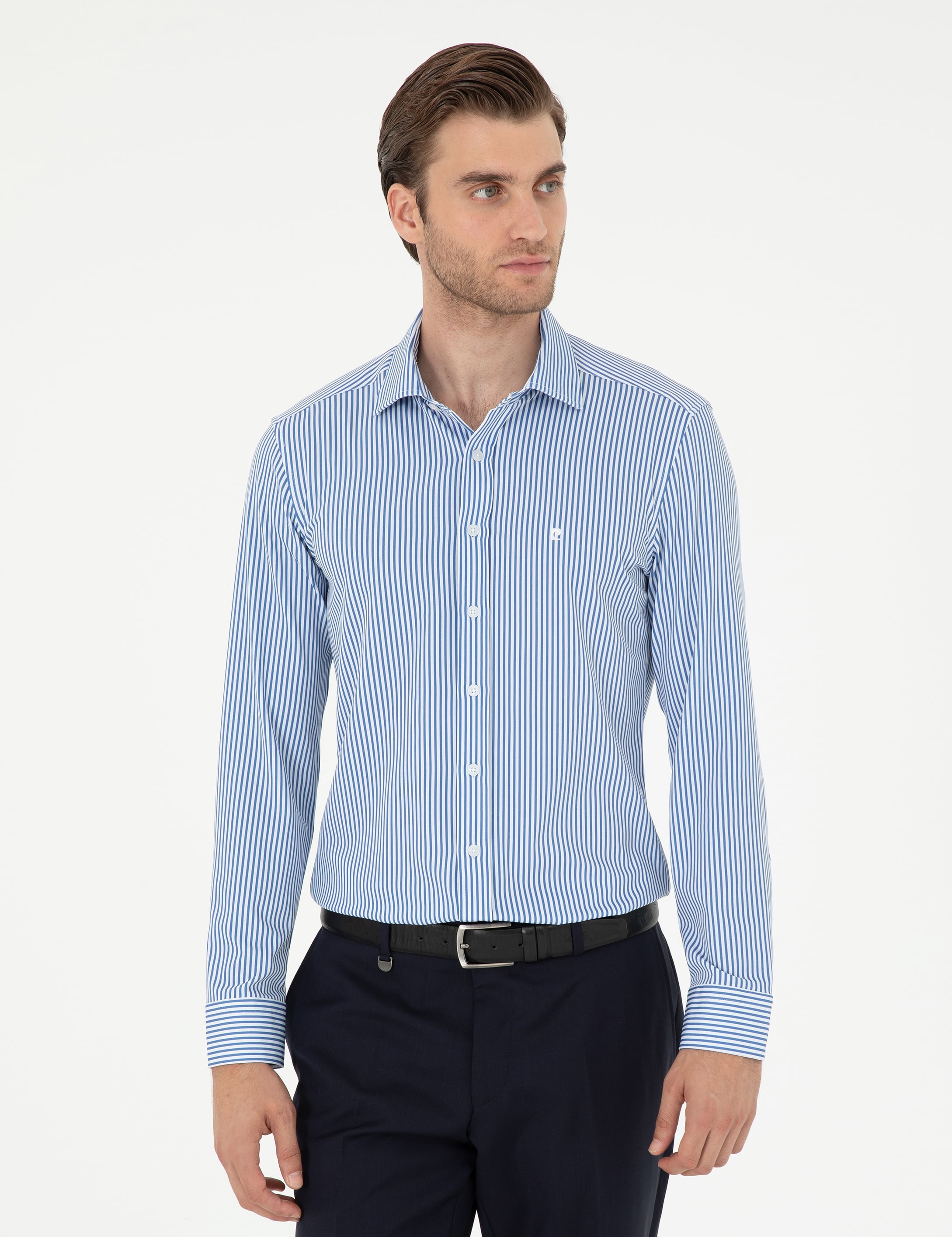 - Mavi Likralı Ex. Slim Fit Uzun Kollu Gömlek