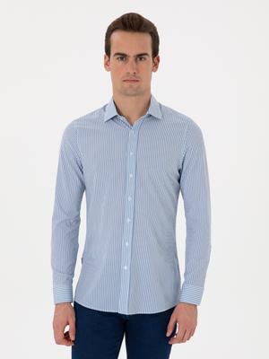 Mavi Likralı Ex. Slim Fit Uzun Kollu Gömlek