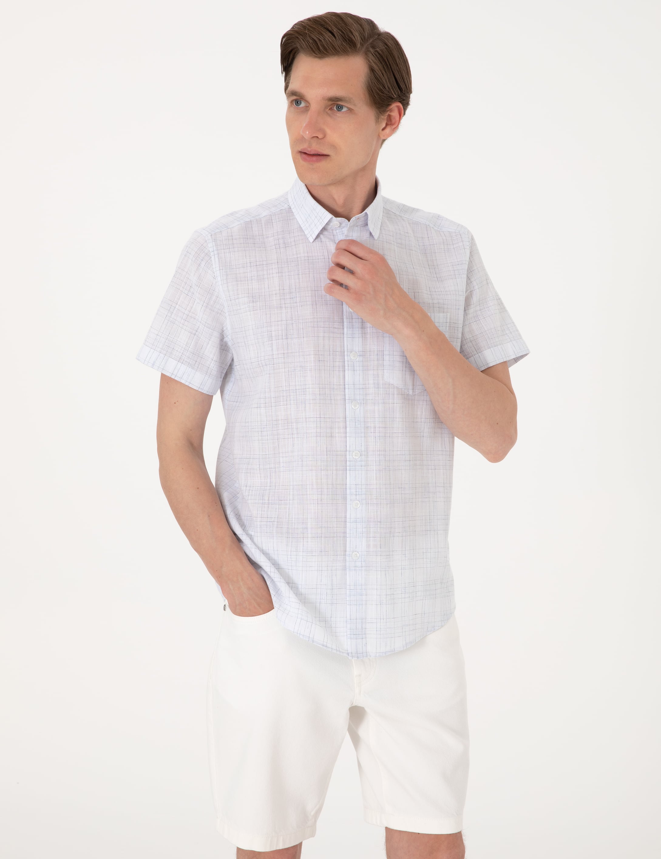 Mavi Regular Fit Kısa Kollu Ekose Gömlek