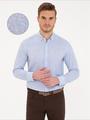- Mavi Keten Karışımlı Regular Fit Uzun Kollu Gömlek