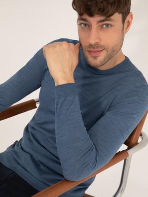 Mavi Slim Fit Bisiklet Yaka Yün Karışımlı Basic Triko Kazak