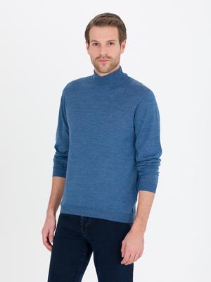 Mavi Slim Fit Yarım Balıkçı Yaka Yün Karışımlı Basic Triko Kazak