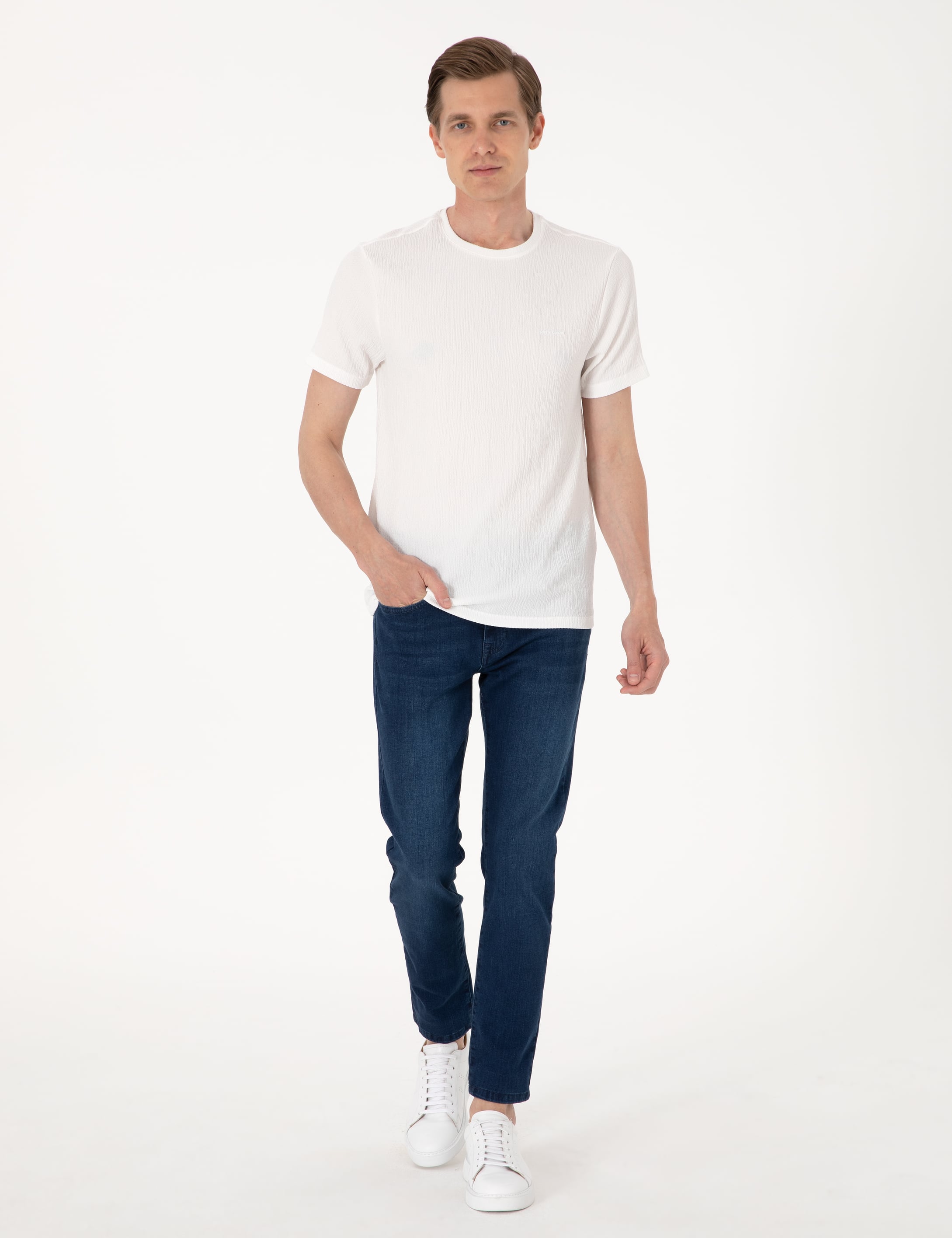 Slim fit kesimiyle modern bir görünüm sunan bu mavi pantolon, şehir hayatının tempolu akışına uyum sağlayan sade ve zamansız bir tasarıma sahiptir. Vücuda dengeli şekilde oturan formu, rahat bir kullanım sağlarken şıklığı da her an görünür kılar. Renk seçimiyle hem mevsim geçişlerinde hem de sıcak yaz günlerinde kombinlemesi son derece kolaydır. Minimal detayları sayesinde hem spor hem de akıllı gündelik (smart casual) stillerde kullanıma uygundur. Dolabını işlevsel ama stil sahibi parçalarla oluşturmak isteyenler için ideal bir temel üründür. Bu yönüyle, farklı üst gruplarla defalarca kombinlenebilecek, kapsül gardırobun olmazsa olmaz parçaları arasında yer alır. Günlük kullanım için açık tonlu tişört ve beyaz sneaker ile birleştirildiğinde, çabasız ama dikkat çekici bir stil elde edilir.Deri etiket, sığır derisinden üretilmiştir.