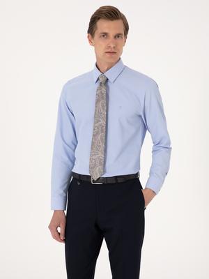 Gömleğin kumaşı, hafif ve nefes alabilir yapısıyla gün boyu rahatlık sağlamaktadır. Slim fit kesimi sayesinde vücuda oturarak hem iş ortamlarında hem de özel günlerde kullanıma uygun hale gelmektedir. Mavi tonları, hem açık hem de koyu renk pantolonlarla rahatlıkla kombinlenebilir, böylece gardırobunuzda çok yönlü bir parça olarak öne çıkmaktadır. Uzun kollu yapısı ise mevsim geçişlerinde ideal bir tercih sunmaktadır.