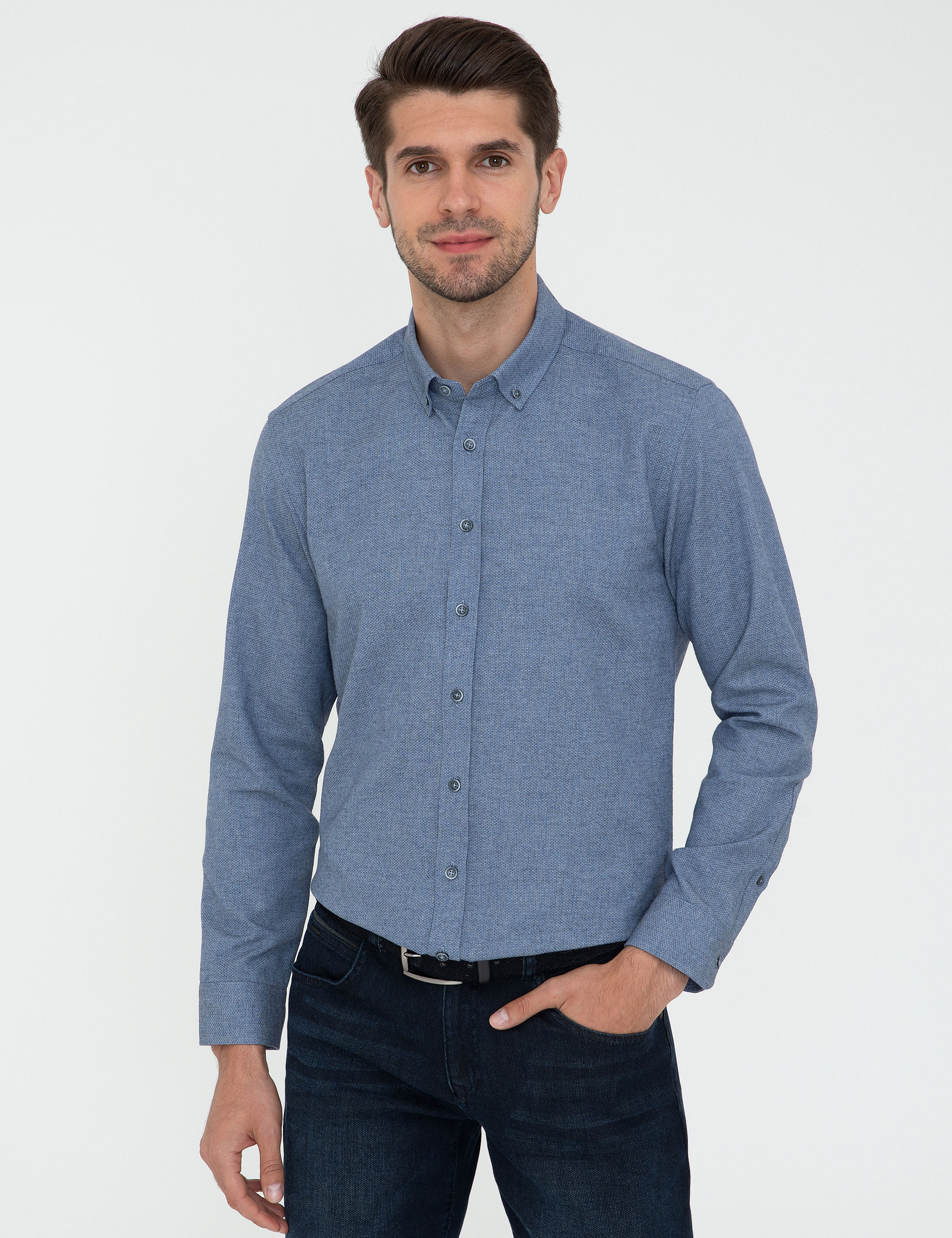 Mavi Slim Fit Uzun Kollu Gömlek