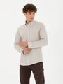 Pamuktan üretilen kumaşı, gün boyu cildin nefes almasına olanak tanımakta ve rahat bir kullanım sunmaktadır. Slim fit kesimi vücudu sararak hem ince hem de modern bir görünüm yaratmakta, zarif yapısıyla dikkatleri üzerine çekmektedir. Düğme detaylarıyla tamamlanan yaka, hem iş ortamlarında hem de gündelik şıklıkta tercih edilebilecek bir yapıdadır. Uzun kollu tasarımı, hem serin günlerde hem de dört mevsim rahatlıkla kullanılabilecek bir gömlek seçeneği oluşturmaktadır.