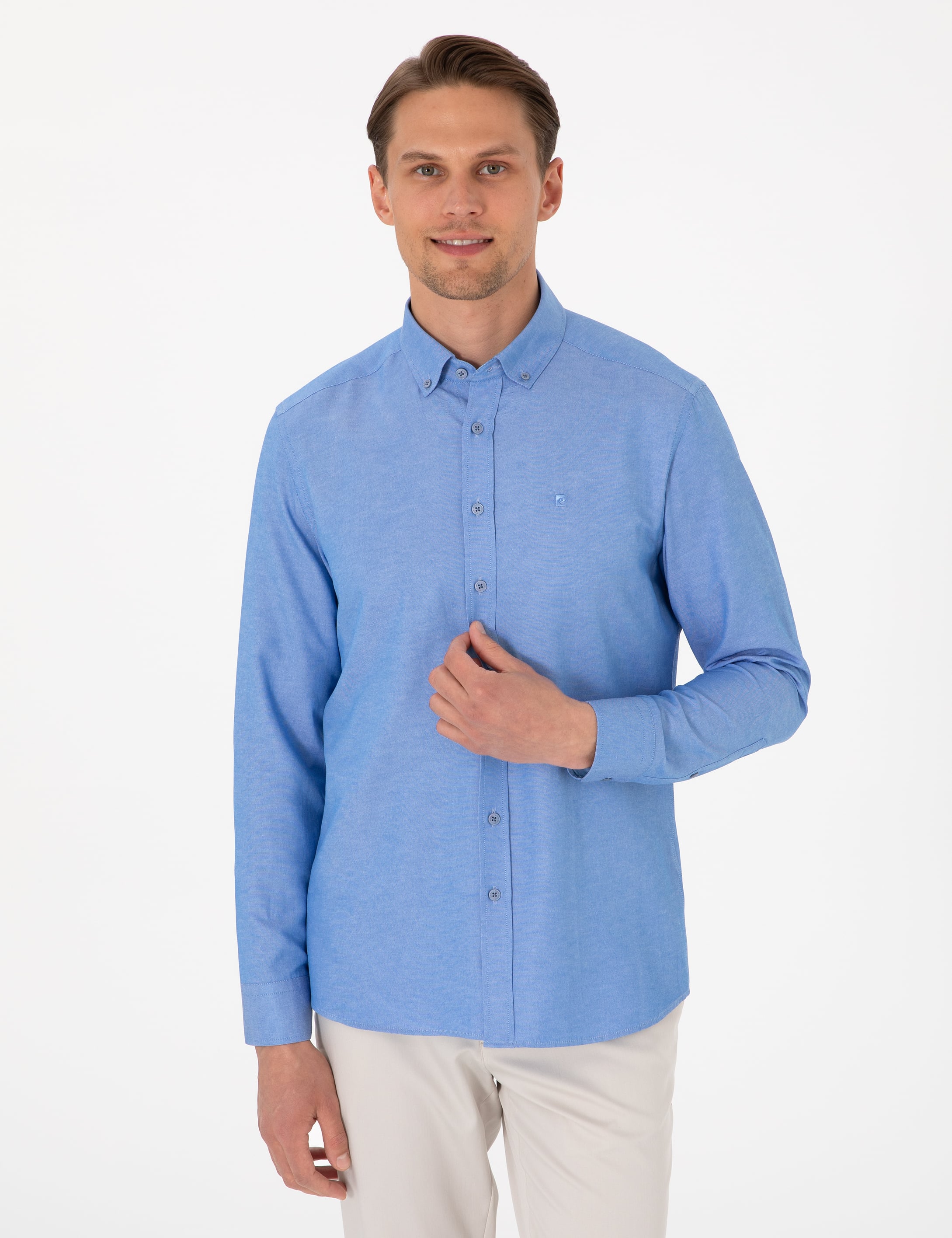 Mavi Oxford Slim Fit Kolay Ütülenebilir Gömlek