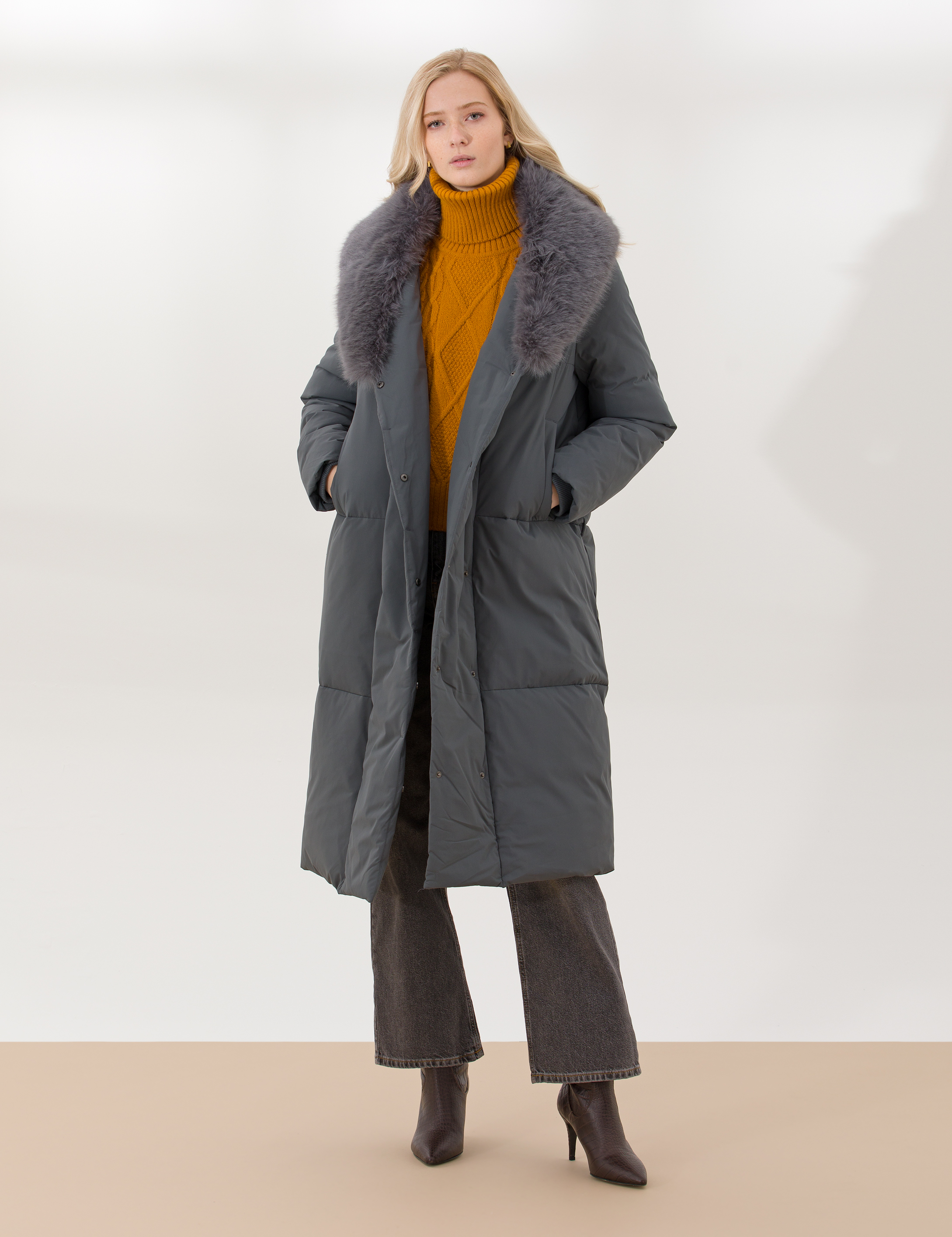 Uzun kesimi sayesinde vücudu tam anlamıyla sarar ve en soğuk günlerde bile sıcacık kalmanızı sağlar. Yaka kısmındaki faux kürk detayı hem estetik dokunuş hem de ekstra sıcaklık sağlar. Montun iç kısmı yumuşak dokulu olup dış katmandan gelen soğuk hava ile iç mekan ısısını dengeler. Yüksek kaliteli fermuar ve düğme kapaması montun pratikliğini artırırken koruma ve kullanım kolaylığı sunar.