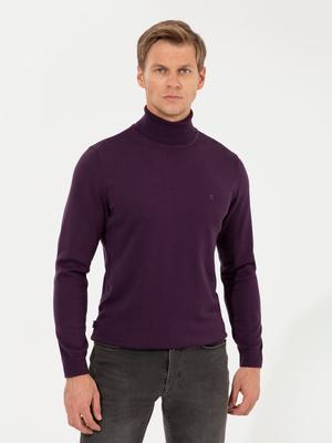 Mor Slim Fit Balıkçı Yaka Basic Triko Kazak
