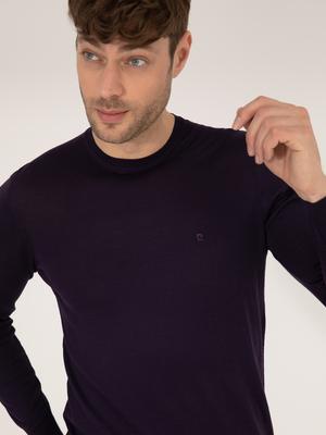 Mor Slim Fit Bisiklet Yaka Yün Karışımlı Basic Triko Kazak