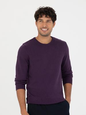 Mor Slim Fit Bisiklet Yaka Basic Triko Kazak