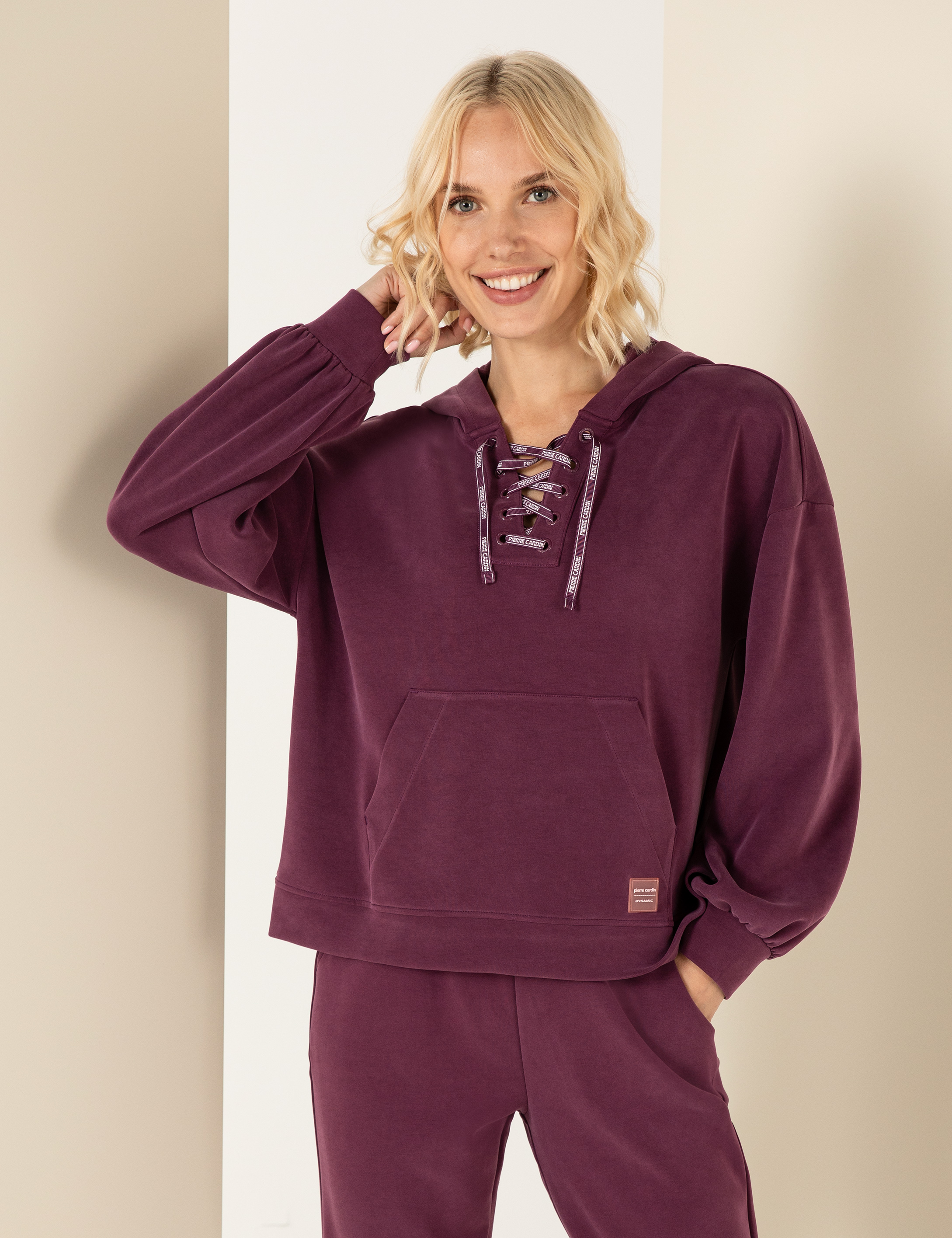 Mürdüm Oversize Kapüşonlu Sweatshirt