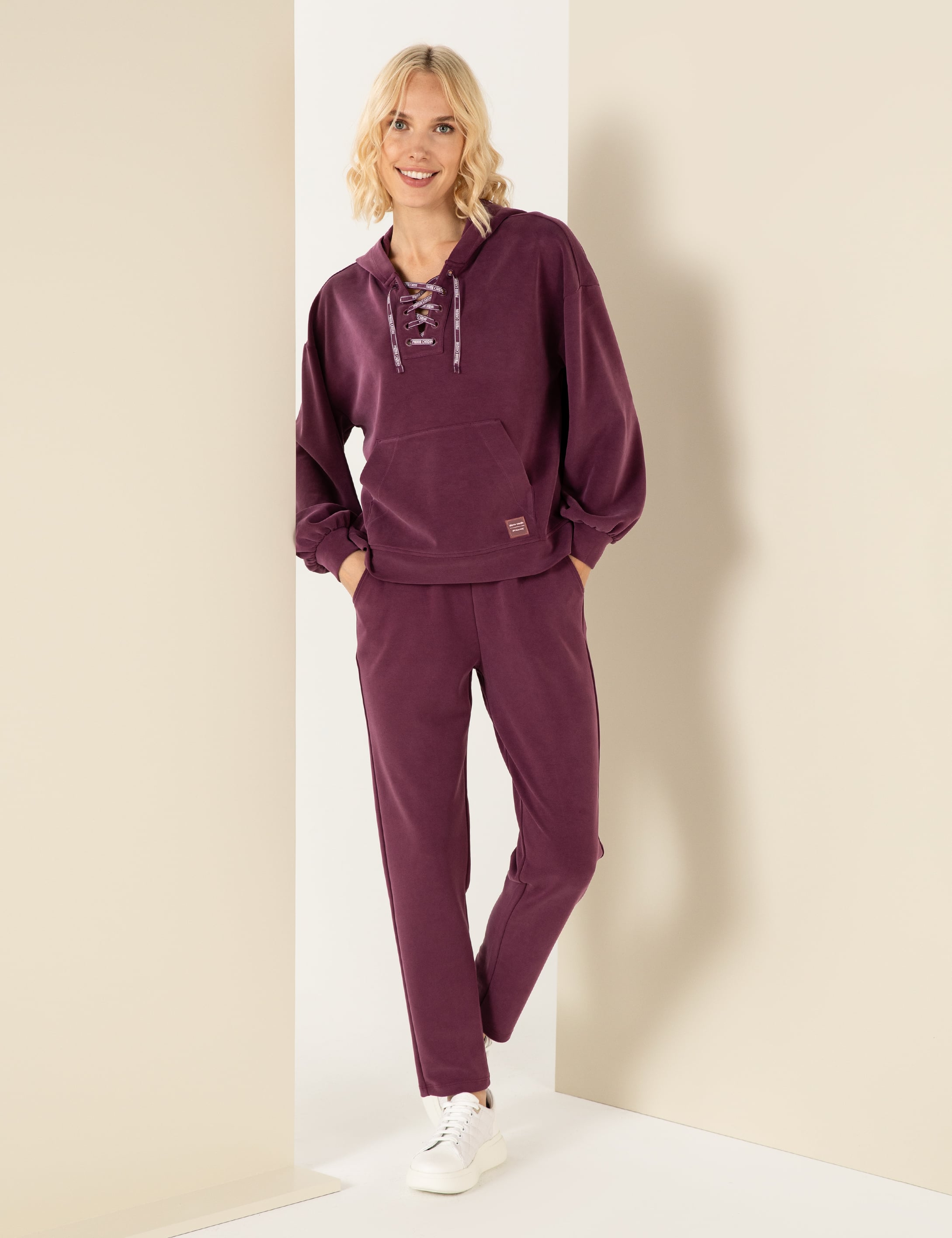Görseldeki model, S beden giymektedir. Modelin boyu 176 cm, kilosu 55 kg’dır. Göğüs ölçüsü 81 cm, bel ölçüsü 63 cm ve basen ölçüsü 89 cm’dir. Ürün, S beden ve 36 beden ölçülerine sahip kişiler için idealdir. Hem evde hem dışarıda konfor arayan herkes için uygun bir seçenektir.