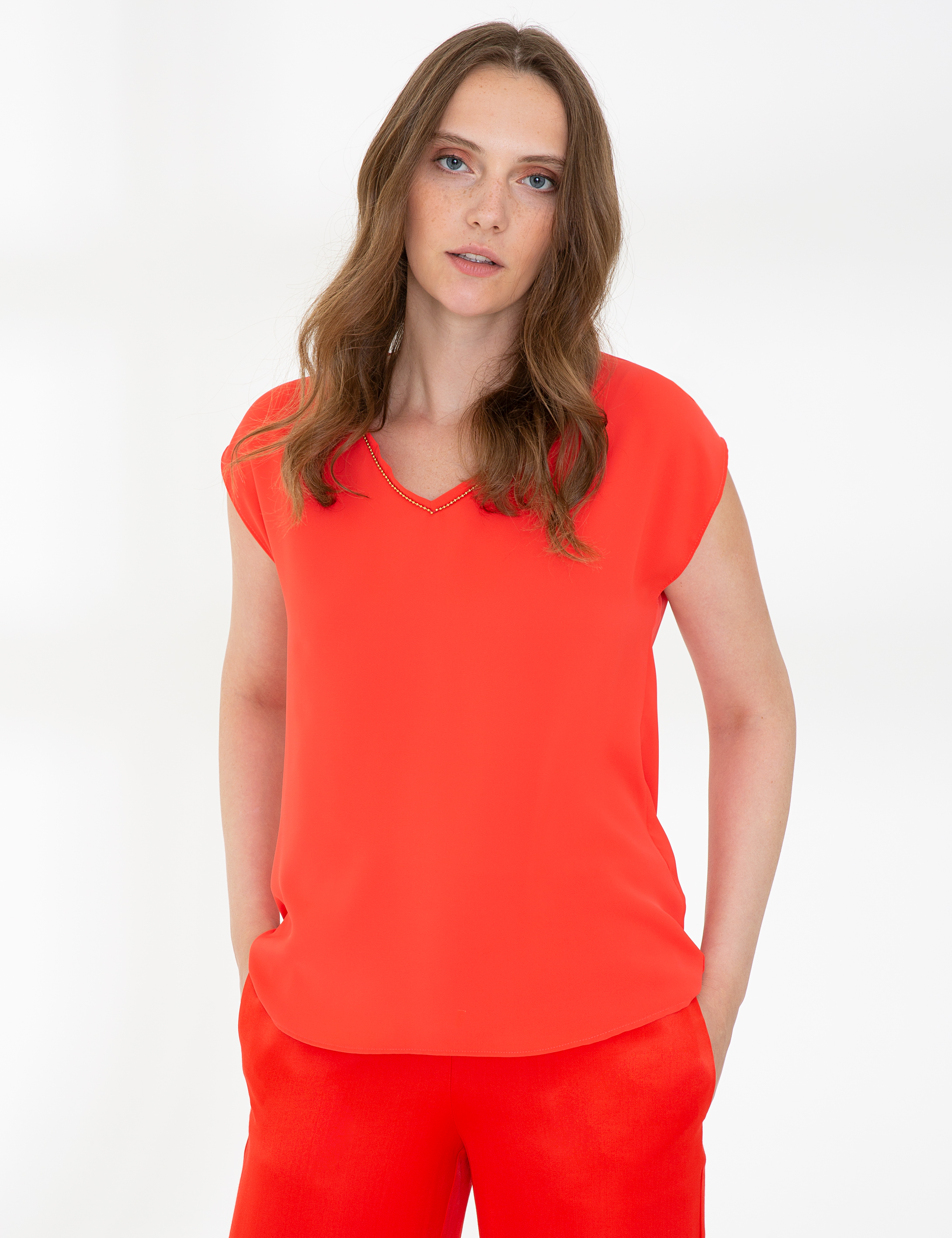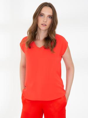 Nar Çiçeği Kısa Kollu V Yaka Bluz