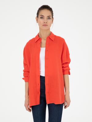- Nar Çiçeği Oversize Keten Gömlek