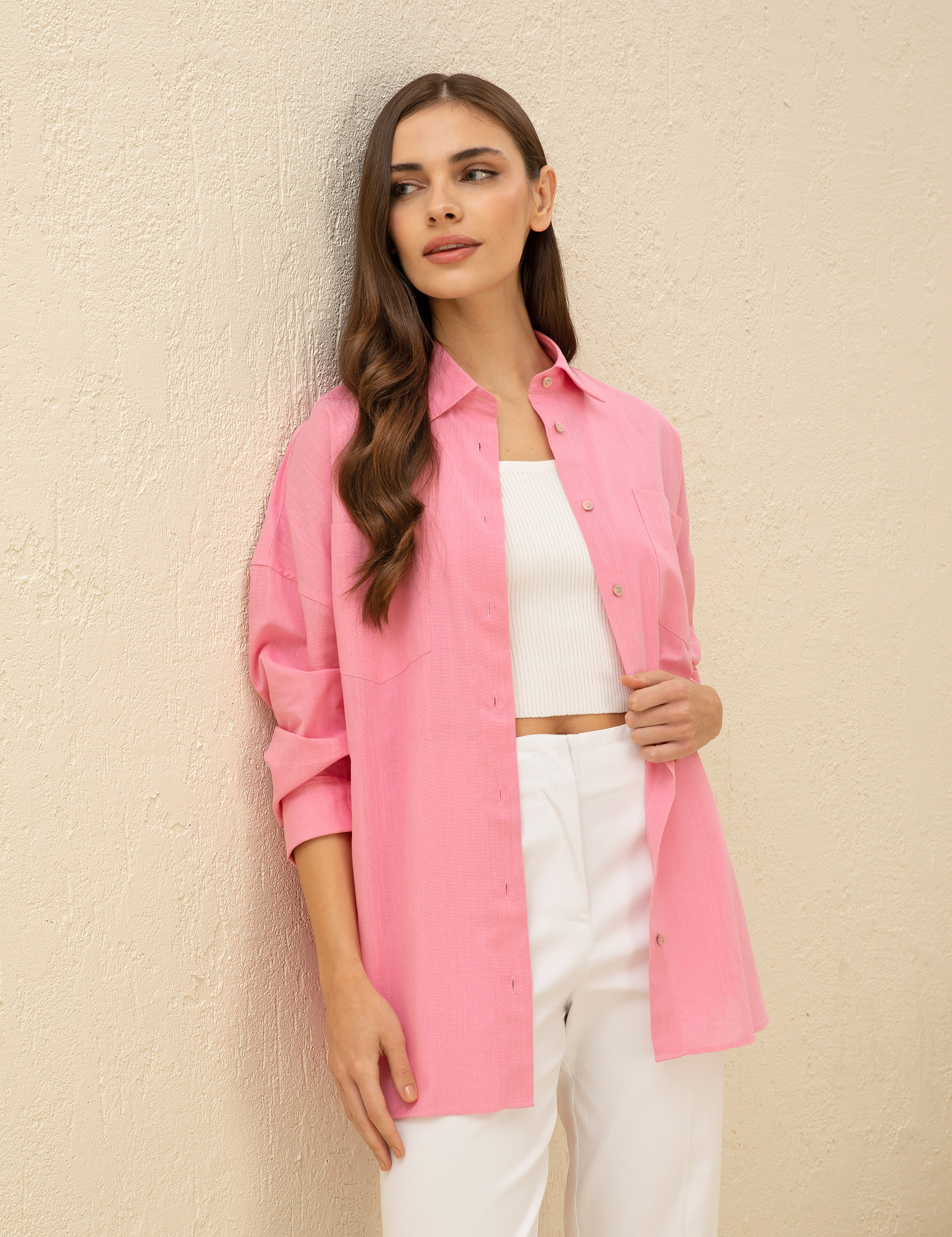 Pembe oversize gömlek özellikle günlük giyim için rahatlık arayan, ancak şıklığından ödün vermek istemeyenler için idealdir. Hem ofis ortamında hem de hafta sonu gezmelerinde rahatlıkla kullanılabilir. Beyaz, siyah veya kot pantolonlarla uyum kombin yapılabilir. Özellikle sıcak yaz günlerinde doğal liflerin sunduğu serinletici etkiyle ferah kalmanızı sağlar.