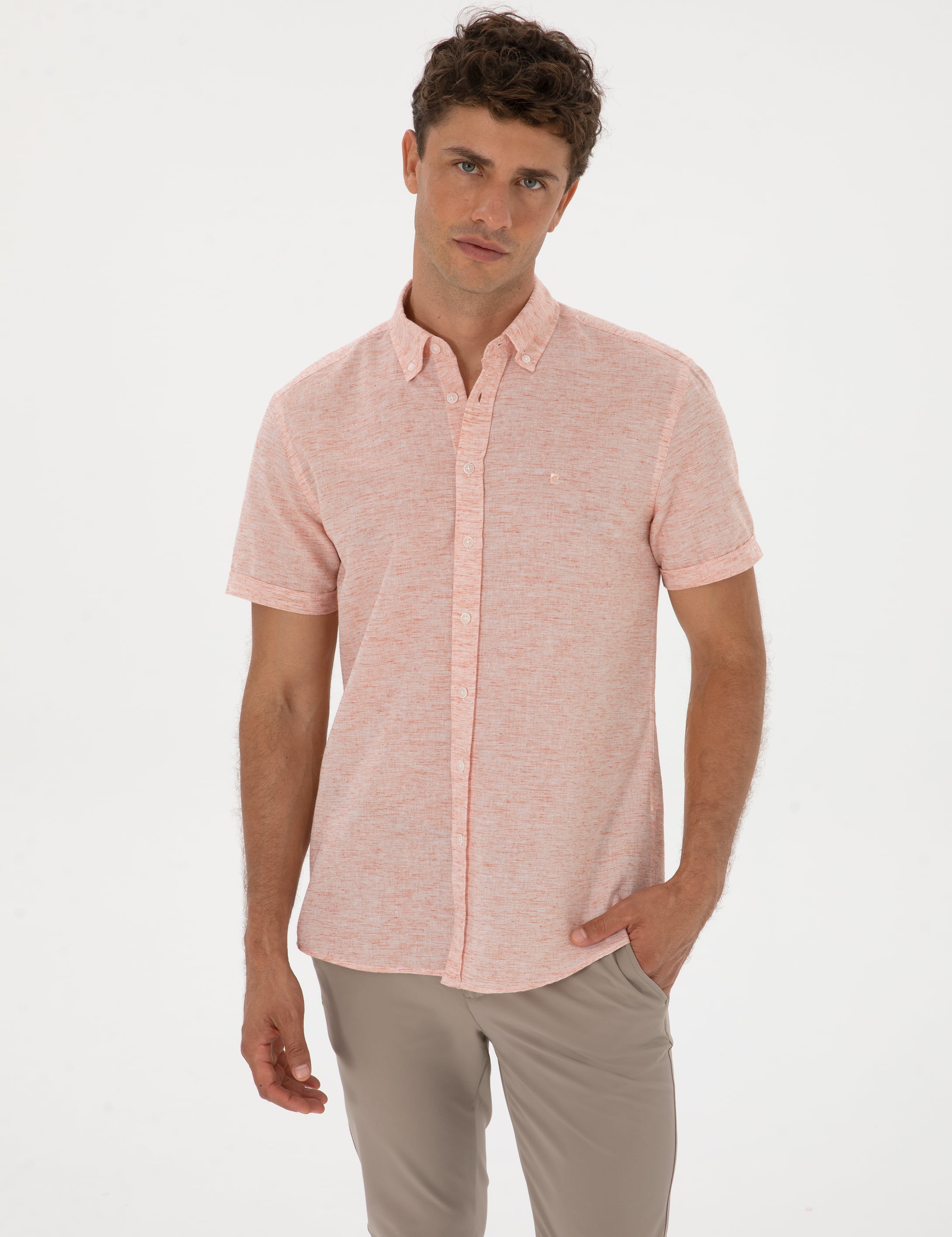Mercan Keten Karışımlı Regular Fit Kısa Kollu Gömlek