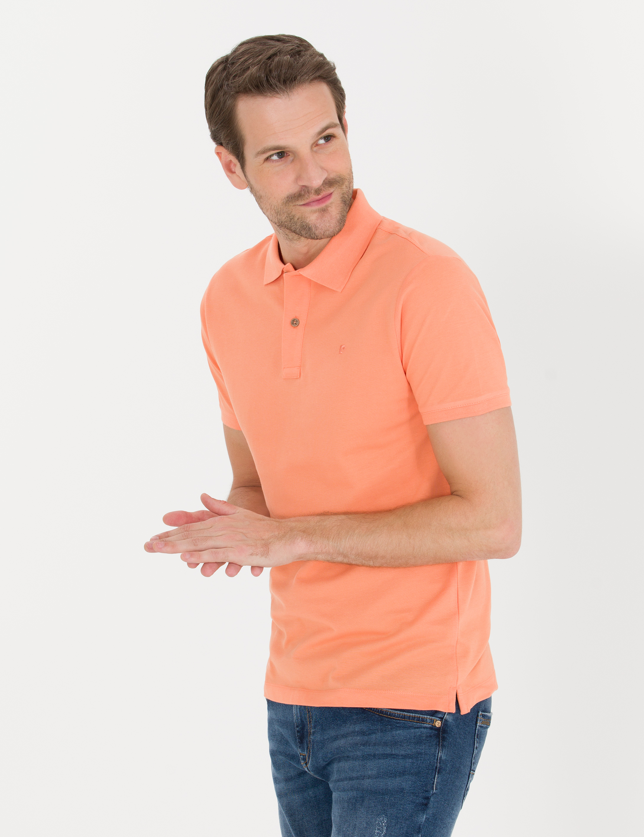 Pembe Slim Fit Polo Yaka Basic Tişört