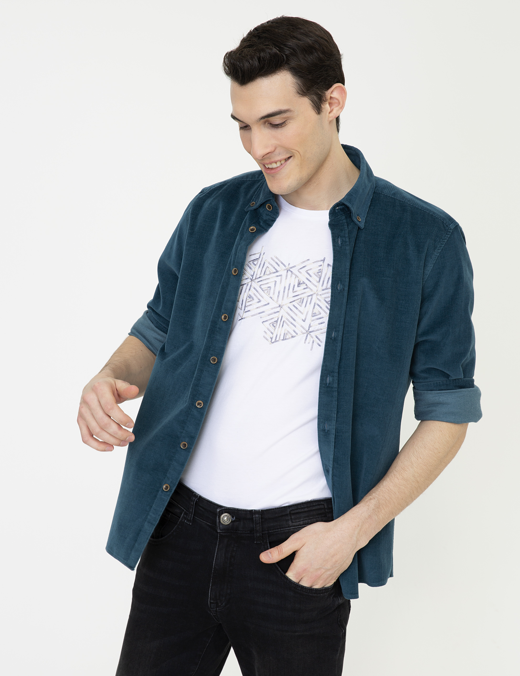 - Petrol Regular Fit Uzun Kollu Gömlek