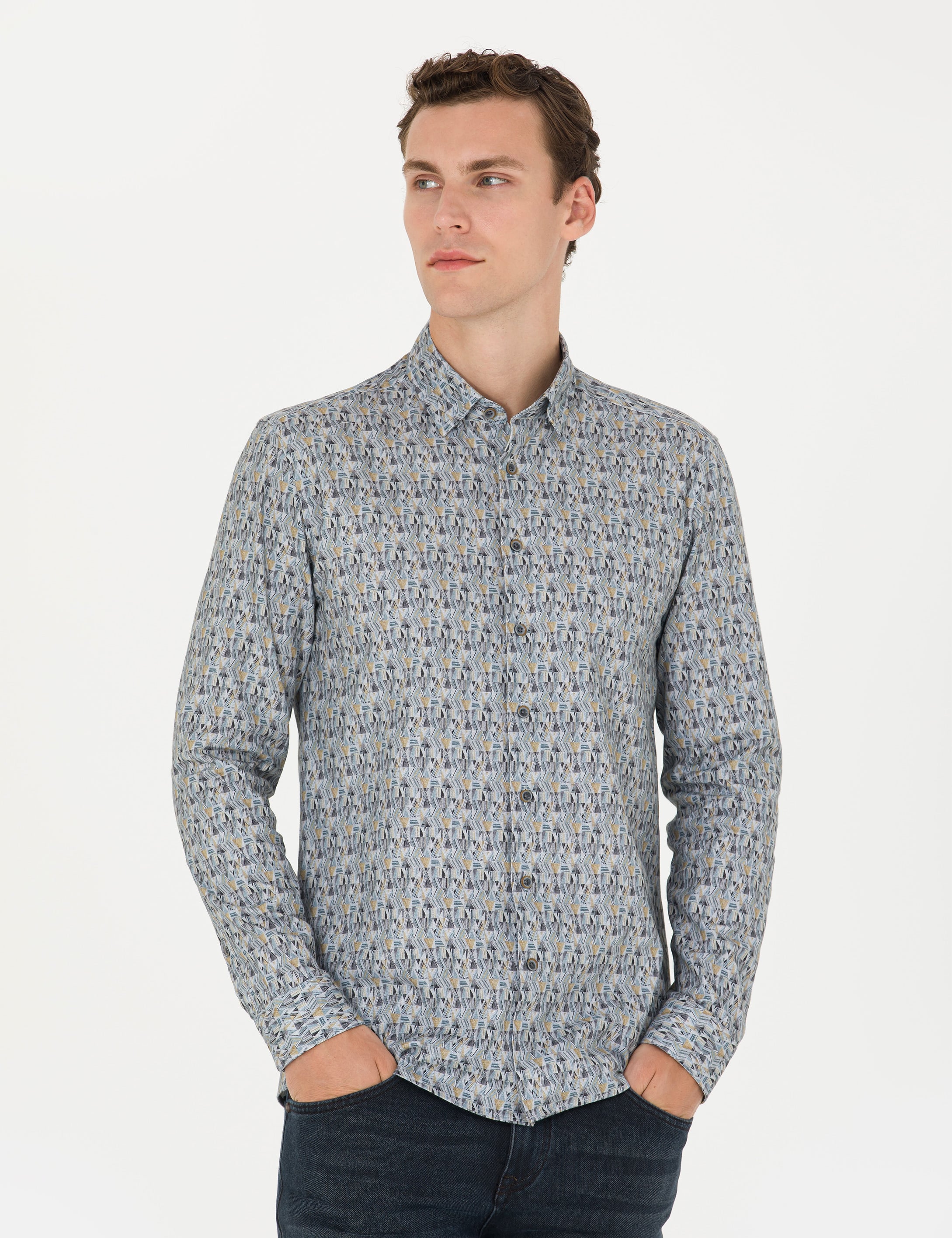 - Petrol Slim Fit Uzun Kollu Gömlek