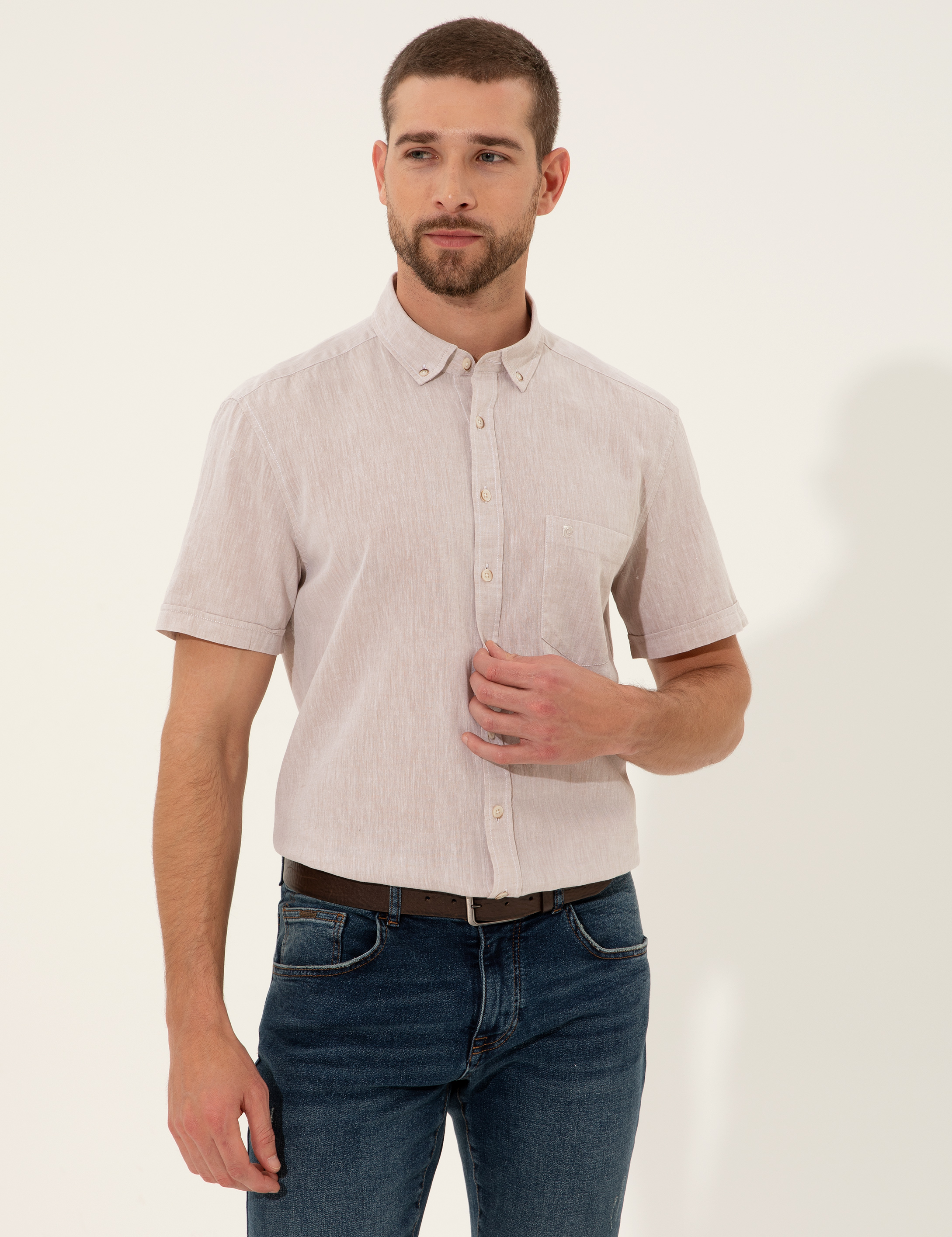 Bej Regular Fit Kısa Kollu Gömlek