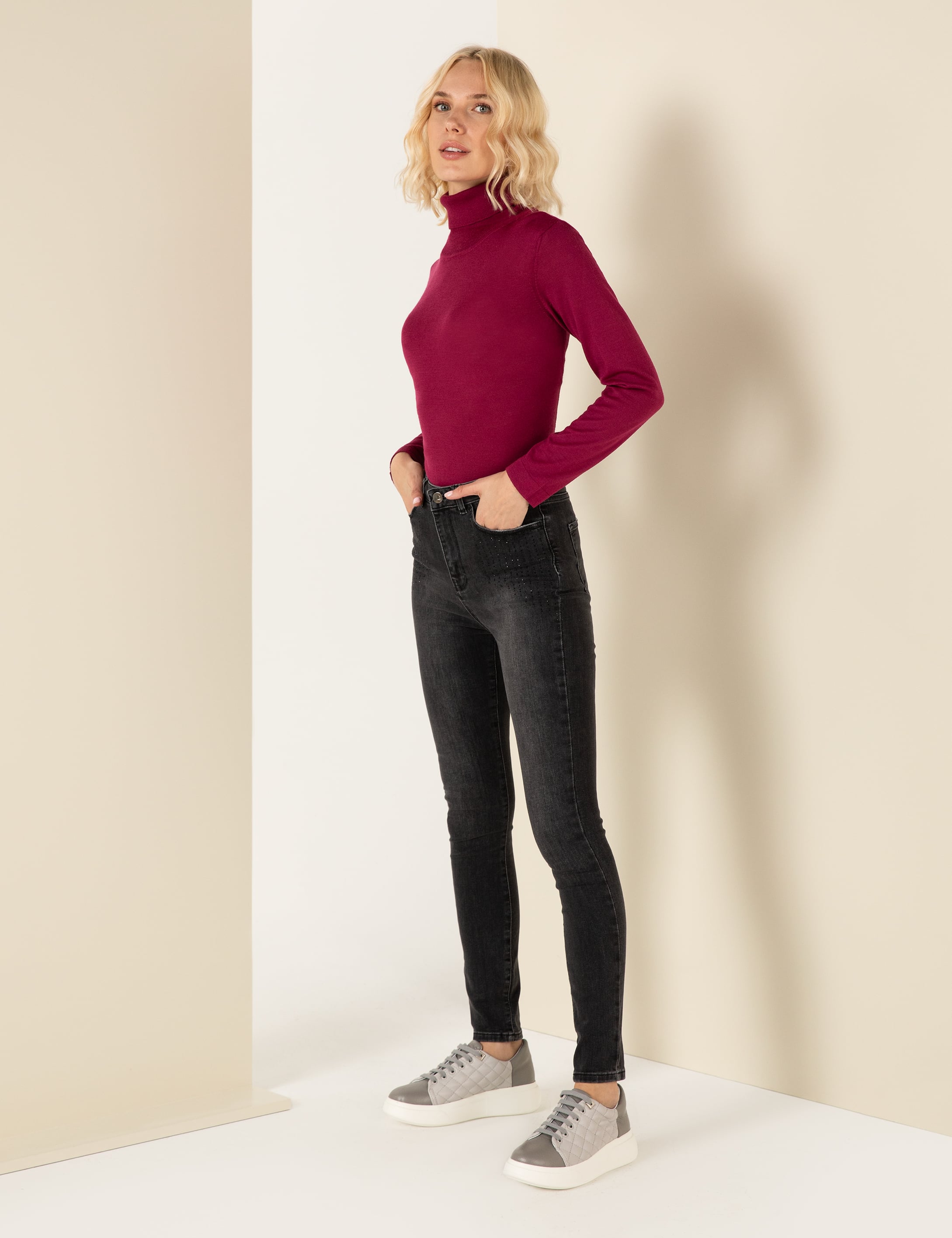 Antrasit Skinny Fit Jean Pantolon