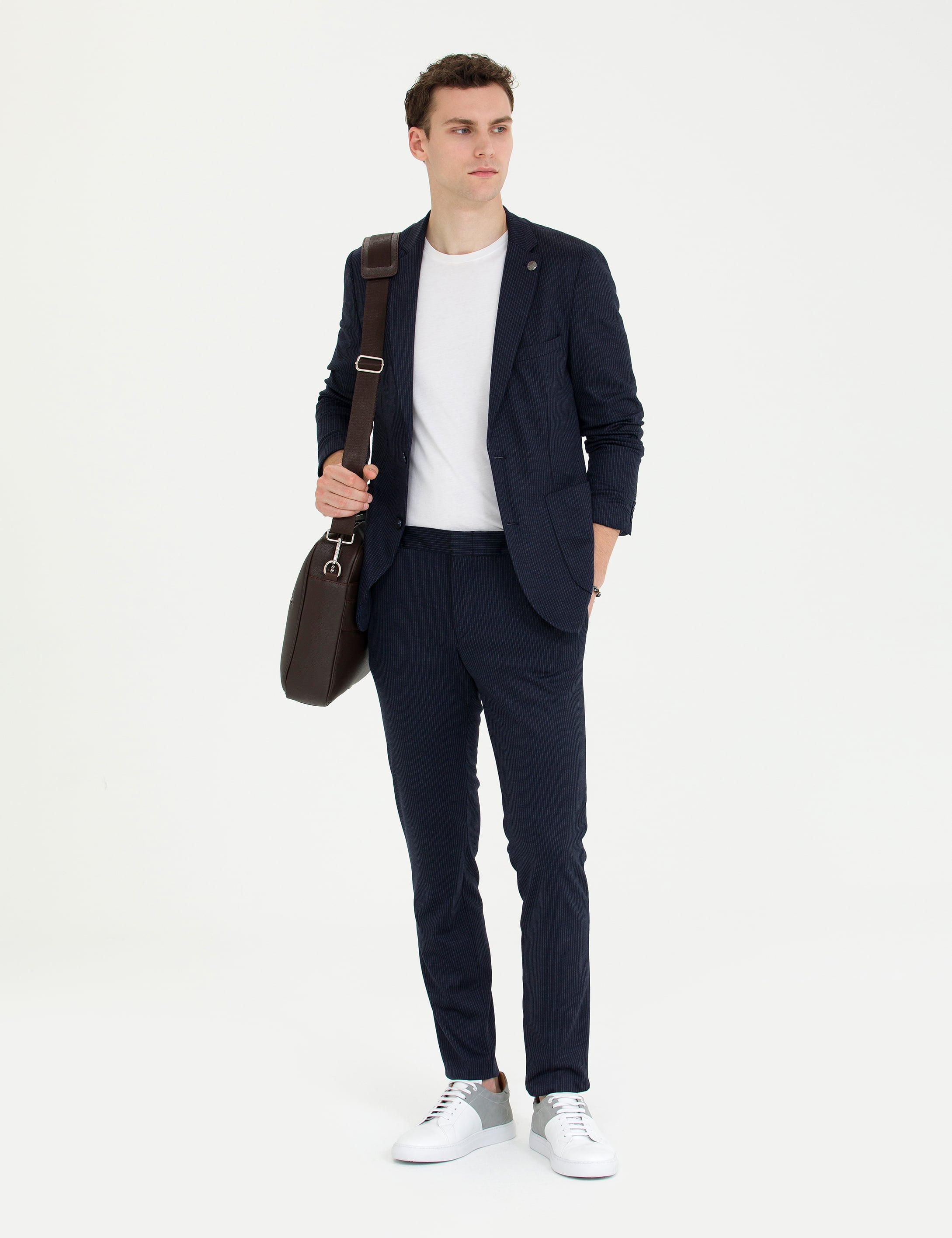 - Lacivert Çizgili Yün Karışımlı Spor Takım Elbise