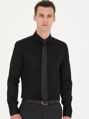 Siyah Likralı Kolay Ütülenebilir Ex. Slim Fit Basic Gömlek