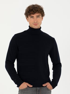 Lacivert Slim Fit Balıkçı Yaka Triko Kazak
