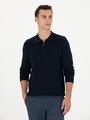 - Lacivert Slim Fit Fermuarlı Polo Yaka Triko Kazak